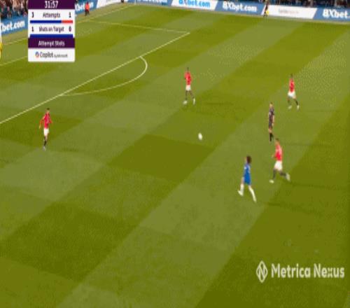 等到這次帕爾默從他身后進行處理,并未沖擊,而是在在接應后選擇分邊,梅努這一點的不足和壓力就沒有那么大了: