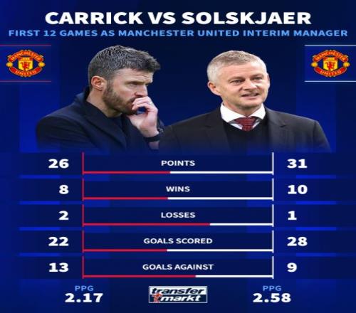 索爾斯克亞雖然連續(xù)輸給阿森納和狼隊(duì),但帶完19場(chǎng)比賽后還是拿到了正式合同。而卡里克本賽季結(jié)束時(shí)一共帶了17場(chǎng)。