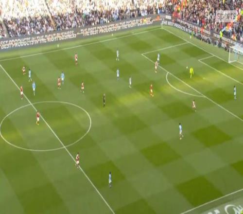 天空體育賽后對這粒進球的分析,集中在馬丁內利主動上搶格伊的選擇上,當時格伊回撤到曼城禁區左側,為門將提供出球點。多納魯馬敏銳發現空當,手拋球找到奧賴利,一舉打穿阿森納的逼搶體系。