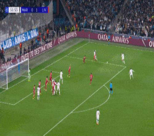 第60分鐘,特拉奧雷面對阿利松射門打飛,馬賽錯失良機。