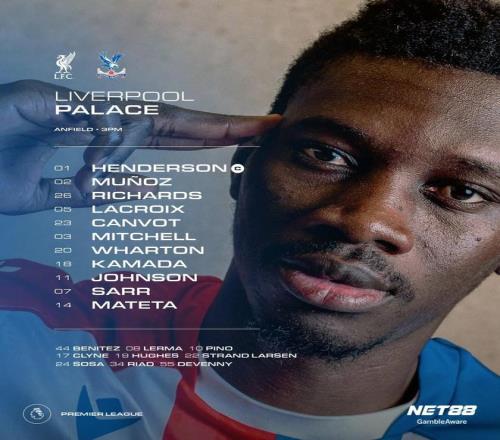 水晶宮首發:1-迪恩-亨德森、23-康沃、5-拉克魯瓦、26-克里斯-理查茲、2-穆尼奧斯、20-亞當-沃頓、18-鐮田大地、3-米切爾、11-布倫南-約翰遜、14-馬特塔、7-伊斯梅拉-薩爾