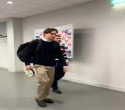 薩拉赫穿著一套西裝、搭配流蘇鞋走過(guò)通道時(shí),神情顯得有些低落。