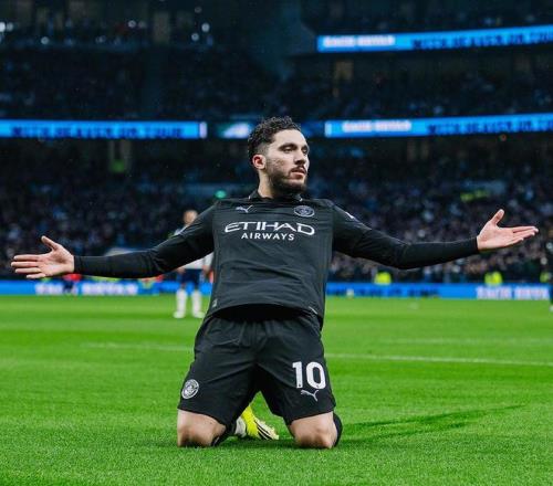 第44分鐘,托特納姆熱刺后防線送大禮,羅德里長傳,B-席接球橫敲,塞門約推射破門,曼城2-0領先!