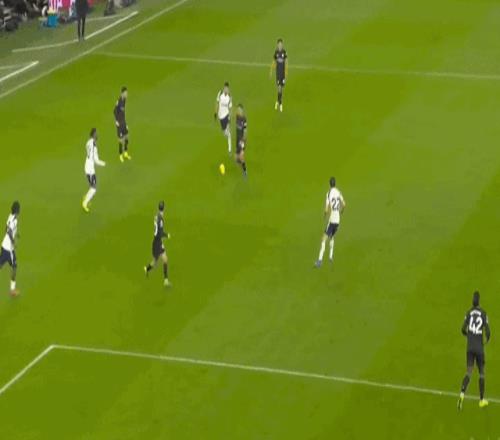下半場,托特納姆熱刺強勢反撲,第53分鐘,索蘭克亂戰中打進一球,慢動作顯示,索蘭克射門時并沒有踢到足球,而是踢在曼城后衛的腳腕上將球打進的。