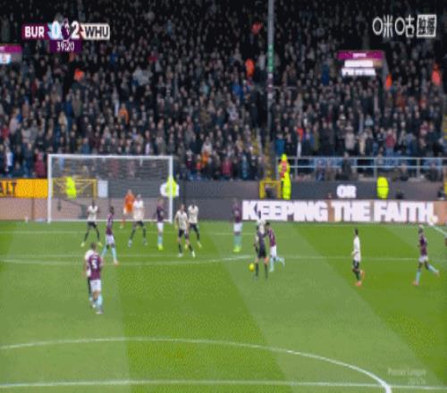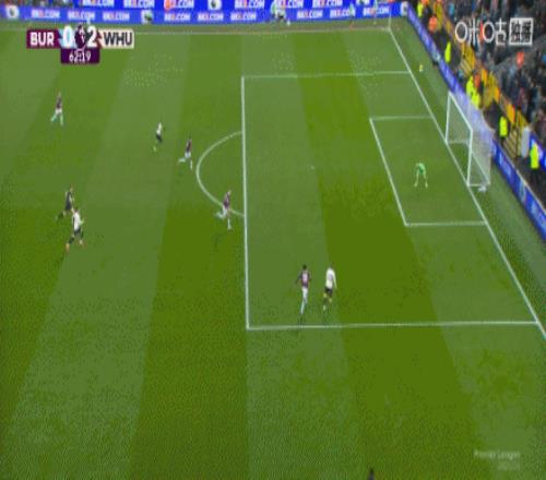 第25分鐘,迪烏夫傳中,卡斯特利亞諾斯頭槌破門(mén),伯恩利0-2西漢姆聯(lián)