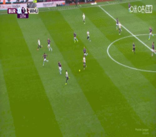 第12分鐘,薩默維爾單刀面對(duì)門(mén)將,輕挑破門(mén),伯恩利0-1西漢姆聯(lián)