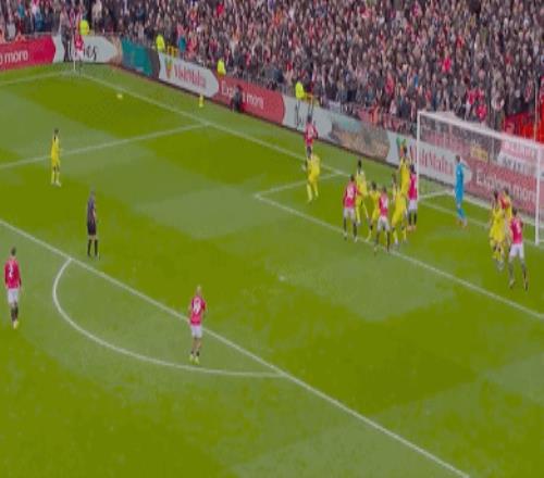 第37分鐘,紅魔打出精妙的角球戰(zhàn)術(shù)。B費(fèi)低平球開到前點(diǎn),梅努不看人回敲,姆伯莫中路包抄推射遠(yuǎn)角得手,曼聯(lián)1-0領(lǐng)先;對熱刺而言,姆伯莫堪稱噩夢。
