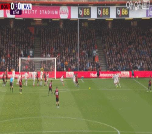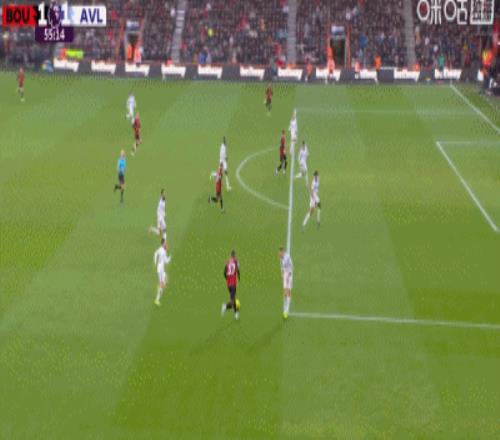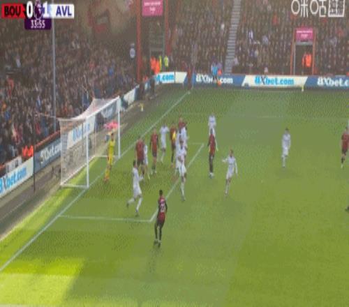 第34分鐘,拉揚甩頭攻門擊中橫梁彈出,伯恩茅斯險些扳平