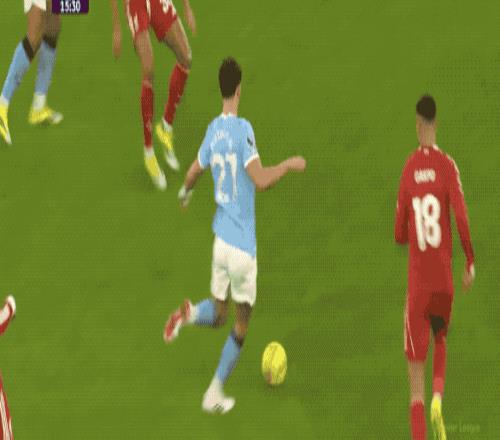 曼城的進攻一浪高過一浪,在前場的施壓,迫使利物浦頻繁丟失球權。第40分鐘,馬爾穆什的遠射力量十足,但沒能命中目標。