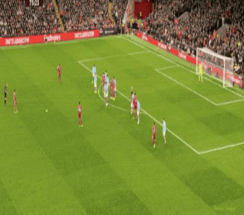 第93分鐘,哈蘭德操刀主罰,穩穩將球打進,首次攻破安菲爾德的球門,追平父親在利物浦主場打進3球的紀錄。