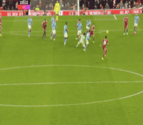 第100分鐘,利物浦大舉壓上,多納魯馬做出神撲,謝爾基本方半場傳球,索博斯洛伊拉拽哈蘭德,哈蘭德也還以顏色,皮球緩緩滾進空門。