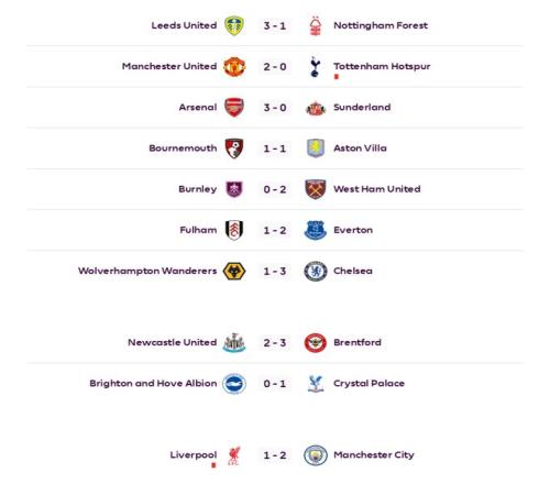 北京時間2月9日凌晨,隨著本輪焦點戰利物浦主場遭曼城絕殺,英超第25輪十場比賽全部戰罷。阿森納3比0完勝桑德蘭,繼續6分領跑英超;曼城憑借哈蘭德93分鐘的制勝點球2比1力克利物浦,坐穩次席,領先本輪打出平局的維拉3分;曼聯2比0擊敗熱刺,繼續排名第四,距離維拉3分;切爾西3比1擊敗狼隊,領先本輪輸球的利物浦4分,兩隊分列第五、第六。