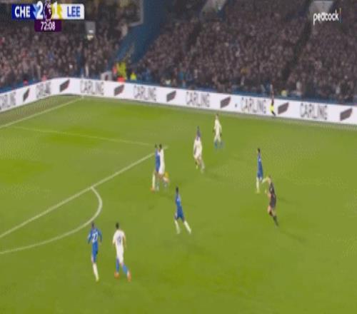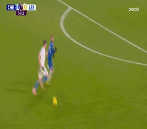 第65分鐘,安德雷-桑托斯后場解圍不遠,賈斯汀殺入禁區,被凱塞多絆倒在地,利茲聯同樣獲得點球。