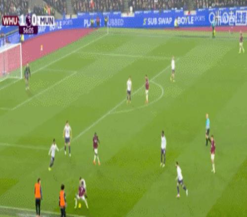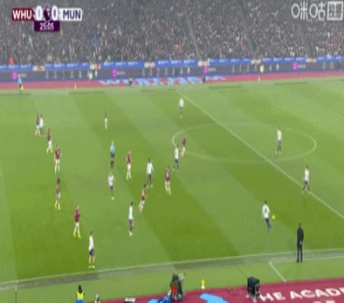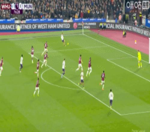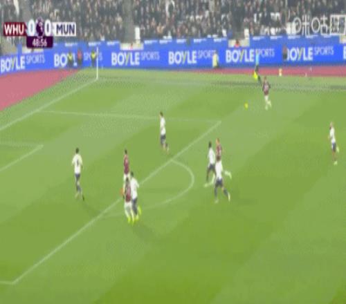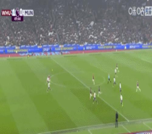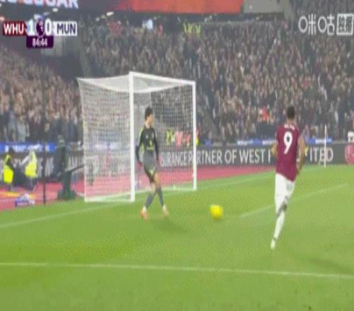 第49分鐘,紹切克門前插上搶點推射破門,西漢姆聯1-0曼聯