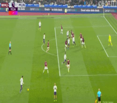 第90+5分鐘,謝什科禁區腳后跟破門,曼聯1-1扳平西漢姆聯