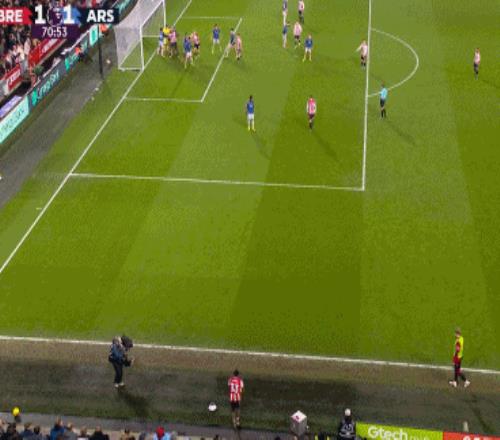 第22分鐘,布倫特福德前場(chǎng)右路邊線球扔到禁區(qū),拉亞得球發(fā)起進(jìn)攻失誤,布倫特福德傳中到禁區(qū),拉亞神撲化解頭球攻門(mén)。