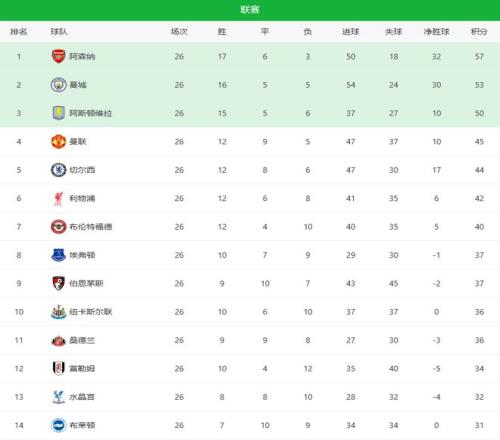 這樣一來,阿森納丟掉的是2分,曼城本輪3-0取勝,將分差從6分縮小到4分。在賽程密集、傷病潛伏的階段,這樣的變化足以重新點燃爭冠懸念,與此同時爭奪歐冠席的球隊更是多達6支,并且分差都咬得很緊。