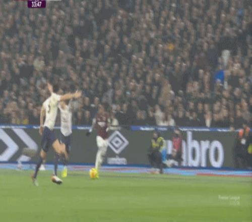 鮑文回敲馬特烏斯-費爾南德斯之后,后者就無人限制,得以在場上輕松拿球、觀察局面,這一點已經有所問題,但考慮到西漢姆聯實力有限,尚可理解和接受,所以關鍵還是在鮑文的身上。