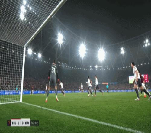 是的,此前還在右半扇興風作浪的鮑文,這時已經進入了禁區,并且在卡塞米羅來不及覆蓋的身前區域,率先完成了爭頂和擺頭的動作: