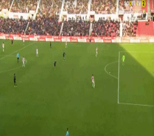 第55分鐘,凱文利用個人能力得分,富勒姆1-1斯托克城
