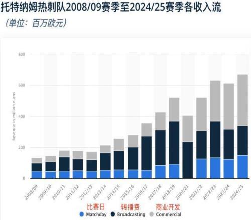 熱刺目前的官方球衣贊助商是耐克,雙方簽約到2033年,每年贊助金額約3000萬英鎊。而球衣胸前廣告贊助商是友邦保險,合同價值每年4000萬英鎊,到2027年夏天結束。從2027年7月開始,友邦將變成熱刺的“全球訓練合作伙伴”——其品牌標識只會出現在訓練服上——這份合同到2032年,每年1000-1500萬英鎊。如果熱刺的情況沒有改善,他們鐵定很難再找到每年肯掏4000萬的贊助商。