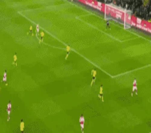 阿森納的開局非常完美,僅僅第5分鐘,薩卡就在門前完成搶點破門,頭球一甩非常精彩。阿森納1-0領先。