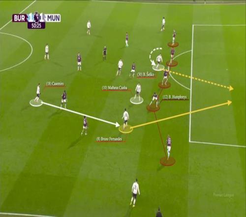 在這一區域的直塞球,他僅次于阿森納的馬丁·厄德高排名第二,同時,只有利物浦的薩拉赫在這個區域創造了更多的絕佳機會。B費就在這個位置斜傳謝什科,幫助曼聯1-0領先伯恩利。