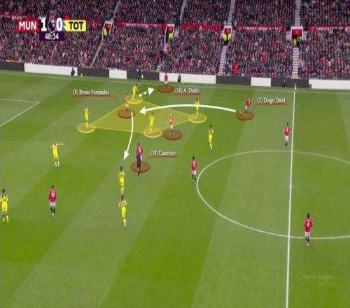 在2-0擊敗熱刺的比賽里,B費的跑位迷惑了熱刺左后衛德斯蒂尼·烏多吉,隨后傳給卡塞米羅,「胖虎」與姆貝莫配合未果,B費又率先做出反應,第一時間傳中給左側的盧克·肖,后者助攻阿馬德·迪亞洛得分,可惜因為越位被判無效。