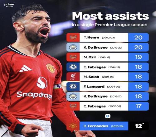 英超官方還給了一個(gè)很關(guān)鍵的拆分:曼聯(lián)剩余13場(chǎng)里有7個(gè)客場(chǎng),而費(fèi)爾南德斯本賽季12次助攻里有8次來(lái)自客場(chǎng);如果他能把客場(chǎng)效率延續(xù)下去,紀(jì)錄窗口會(huì)更大。