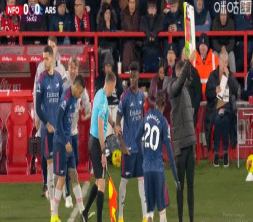 第54分鐘,阿森納連換三人,薩卡、熱蘇斯、梅里諾替補登場