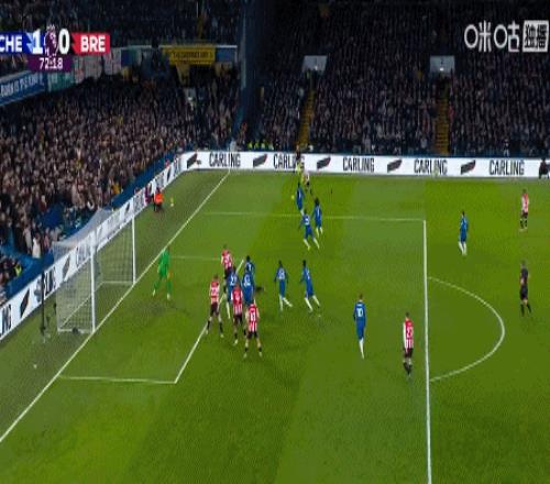 第10分鐘,布倫特福德后防失誤,加納喬突入禁區,凱萊赫出擊破壞