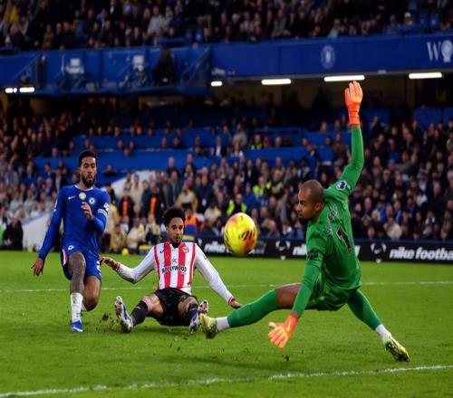 比賽開始后第10分鐘,布倫特福德后防出現(xiàn)回傳失誤,加納喬突入禁區(qū),凱萊赫果斷出擊將球破壞;第22分鐘,沙德擺脫查洛巴防守后將球掃到門前,桑切斯同樣出擊將球撲出。第26分鐘,卡約德后場在恩佐和加納喬的合力壓迫下出球失誤,若昂-佩德羅笑納大禮門前停球抽射成功打破僵局,1:0!