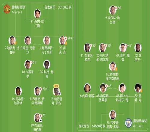 曼聯積35分位列英超第4,遭遇4輪不勝的曼城積43分排在聯賽第2,落后阿森納7分。