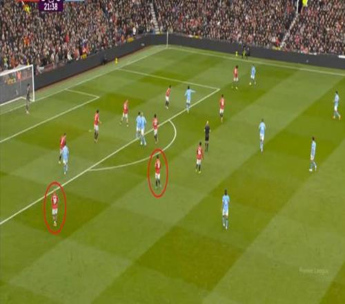 當然了,主場作戰的曼聯在開局階段更需要展現強勢,所以在向前的時候,利用人員層面自然可以拉開的寬度優勢,曼聯打得很堅決:
