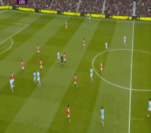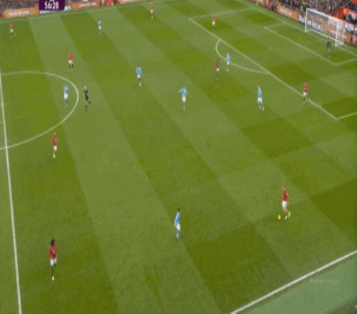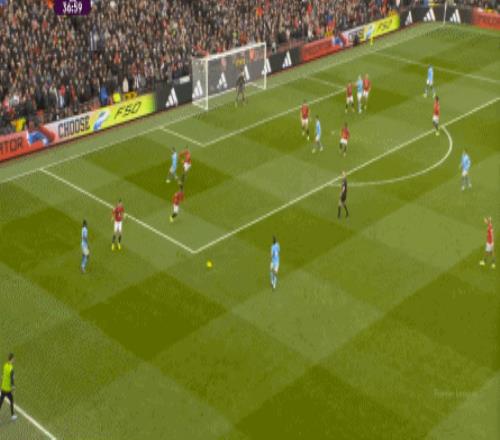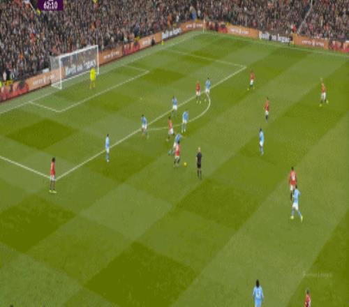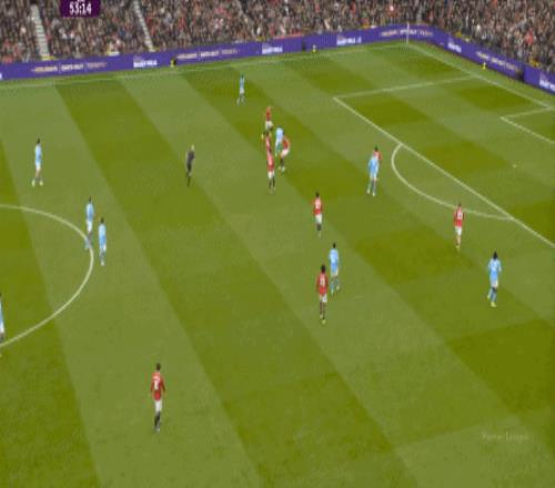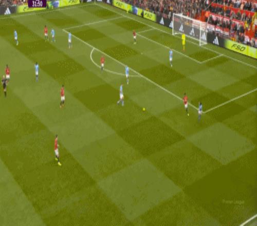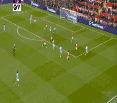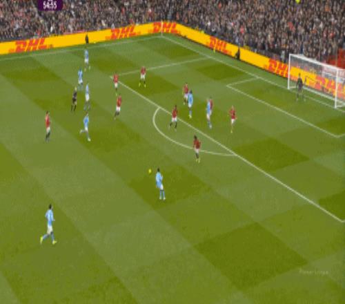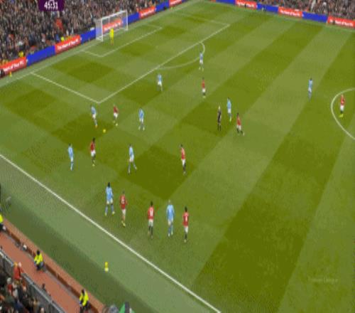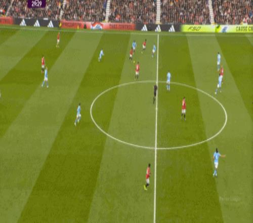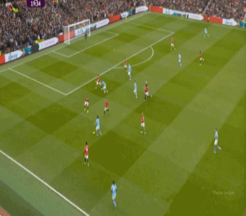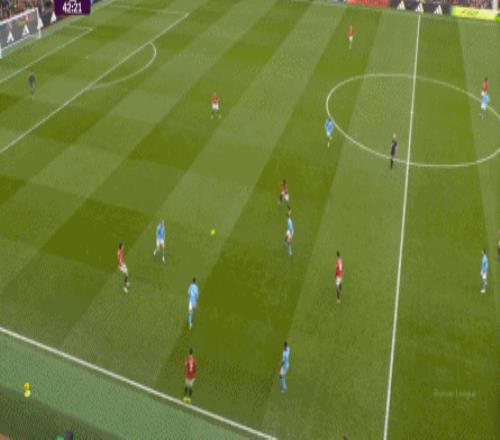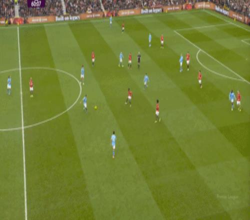 比如曼城曾在前場完成逼搶,讓曼聯需要在人員不整的情況下緊急防守: