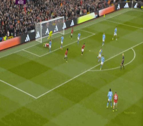 于是在第21分鐘,曼聯通過搶斷完成快攻,從右路起腳傳中,聯系到了左路后點的多爾古,打出了本場比賽的第一次威脅進攻: