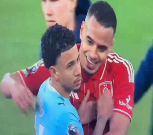 賽后雙方球員交流時,同是巴西老鄉的穆里略笑著抱住了薩維尼奧,而后者表情明顯有些不悅。