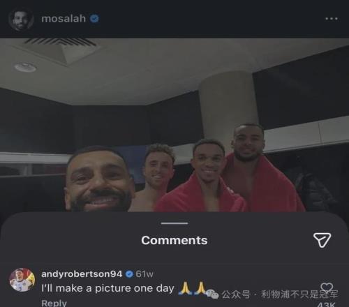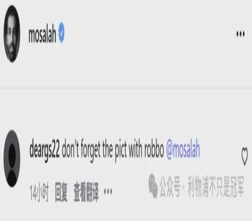 今天還有球迷在這張照片下給薩拉赫留言:“別忘了跟羅伯遜合影”。