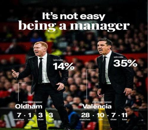 埃夫拉也提醒曼聯名宿,他們自己多數執教的表現都很糟糕。「他們大多剛執教沒多久就下課。我對內維爾說:『在電視上評論輕松多了,你執教瓦倫西亞的時候,別人點海鮮炒飯,你卻端上了炸魚薯條。』三個月后他們就走人了,人們忘不了他們當教練的結局。作為球員,他們都是傳奇,但執教沒有出色成績。因此,現在他們的批評可能毀掉其他教練的執教生涯,這未免有些過分。」