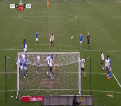 第69分鐘,桑德蘭右路起球,安古洛頭球攻門被門將撲出