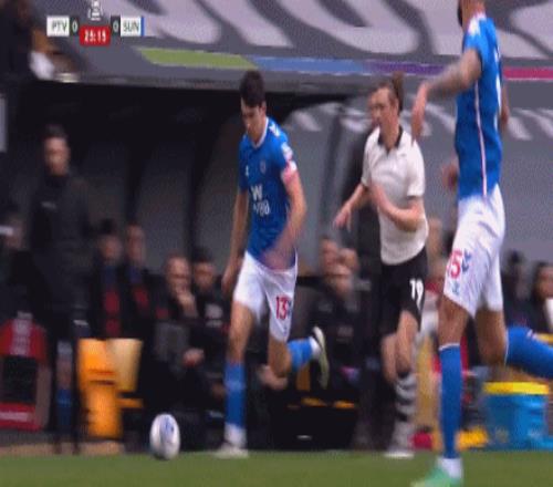 第22分鐘,桑德蘭后場回傳門將,埃爾堡回追用頭球解圍