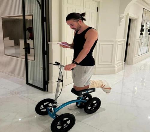 他發布的這組照片里,有依靠膝部助行器出行的畫面,也有在健身房進行康復訓練的身影,一張照片中他披散著長發自拍,還有一張則是他在桑拿房放松的模樣。