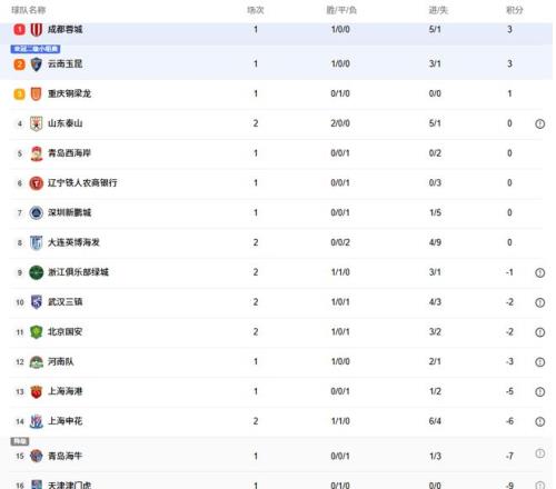 隨著這2場焦點戰結束,中超積分榜的形勢發生詭異變化:開局豪取2連勝的泰山隊,以0分的積分,飆升到中超第四名。而申花隊盡管2場比賽拿到4分,但是他們仍以-6分的積分,排名倒數第三名。