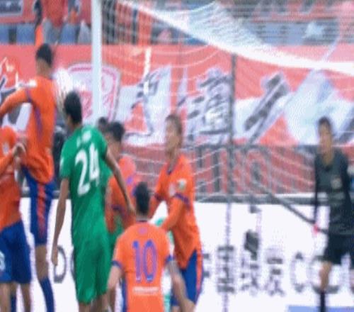 從慢鏡頭來看,球打在了蓋伊伸出的手臂上。回看慢鏡頭之后,主裁判判罰點球,蓋伊一臉震驚地表示,“是我嗎?”謝蒂內主罰點球破門,打入了津門虎賽季首球。