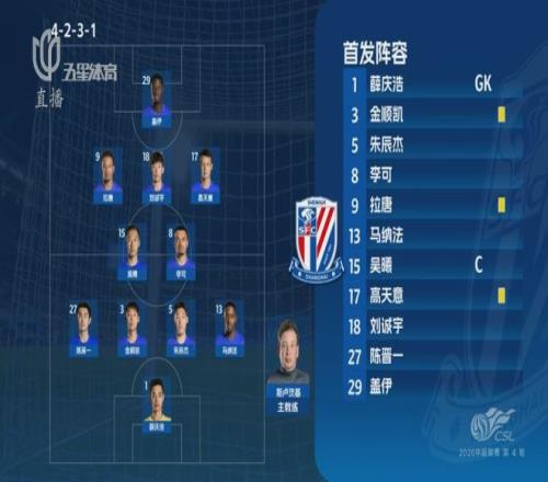 上海申花首發(fā)陣容