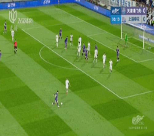 然而客場對上天津的比賽向來不好打,隨后天津隊開始發(fā)動猛攻,不斷通過前場的逼搶和兩側(cè)肋部的滲透,考驗著申花的后防線。