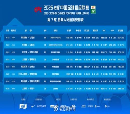 名單顯示,在中超第5輪國安主場對陣蓉城比賽中作出爭議判罰的王競,時隔1輪后于本輪復出,擔任武漢三鎮與浙江隊比賽的主裁判。