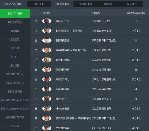 中國足球最大損失:26歲奧斯卡打進7球領跑中超射手榜!