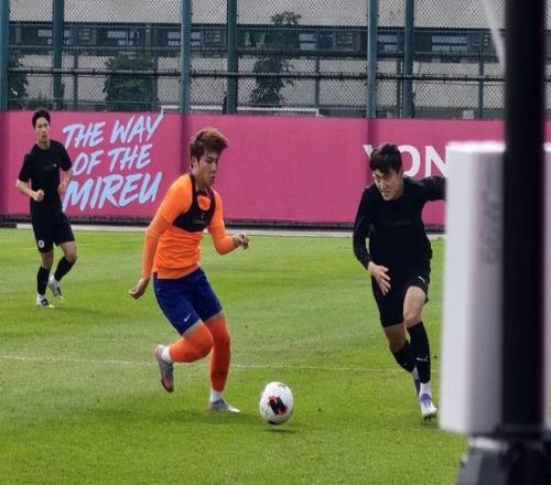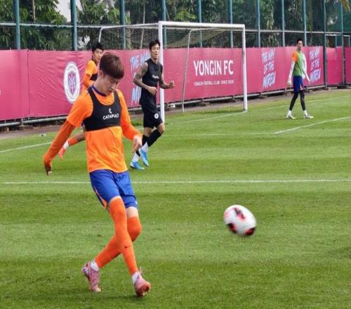 山東泰山與龍仁隊進行熱身賽。(泰山俱樂部供圖)