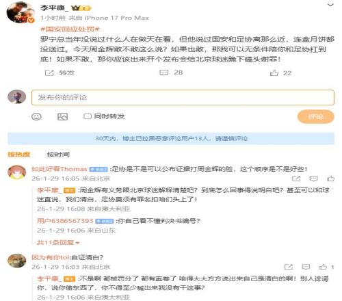 13時(shí)50分,北京國(guó)安在社交媒體公開(kāi)回應(yīng),“人在做,天在看!頭頂三尺有神明!”一小時(shí)之后,北京國(guó)安又刪掉了這一條。